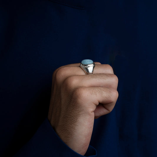 Anillo aguamarina con grabado