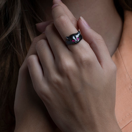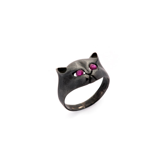 Anillo de gato con rubíes