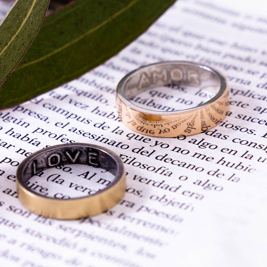 Alianza de oro y plata con mensaje