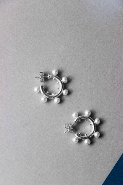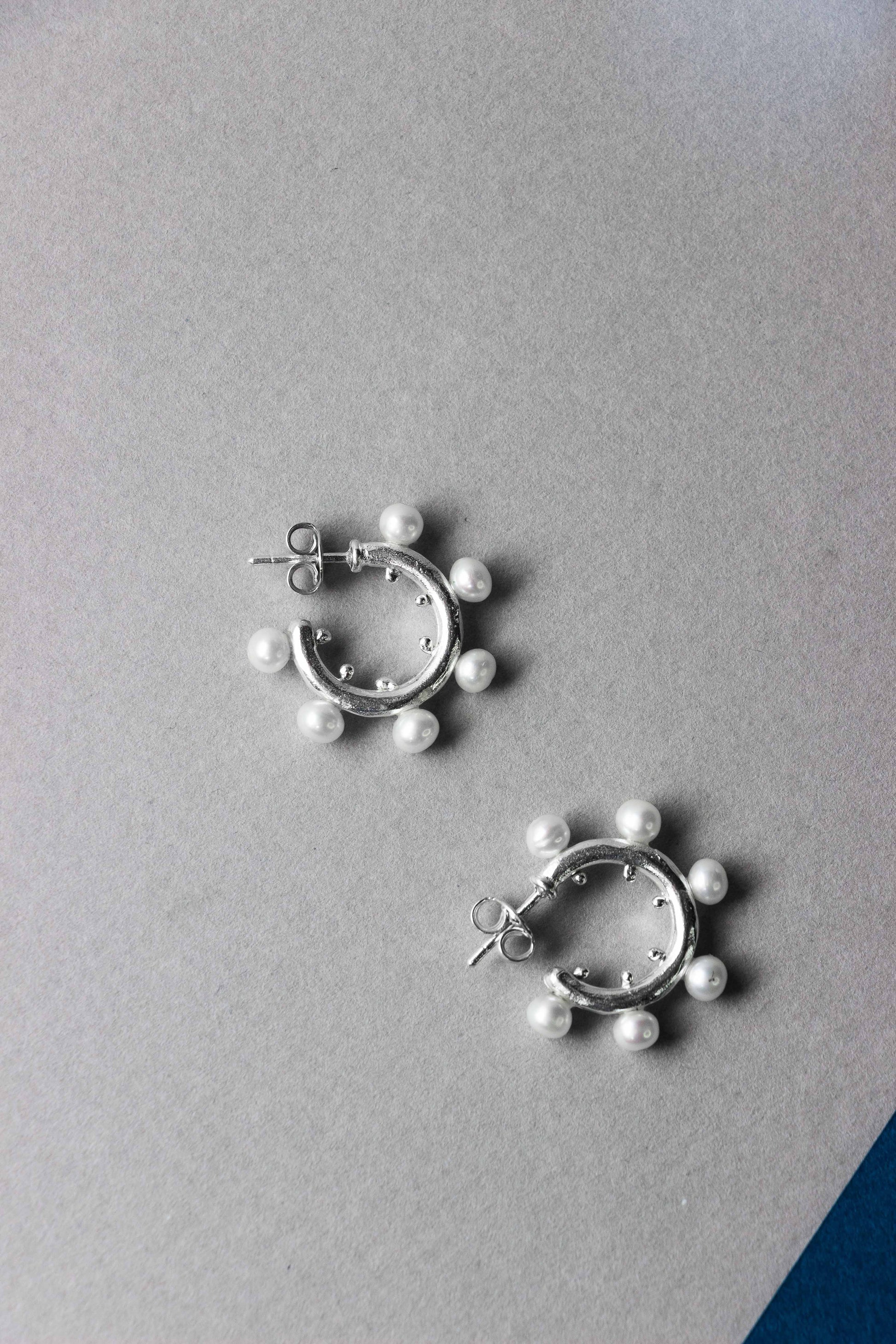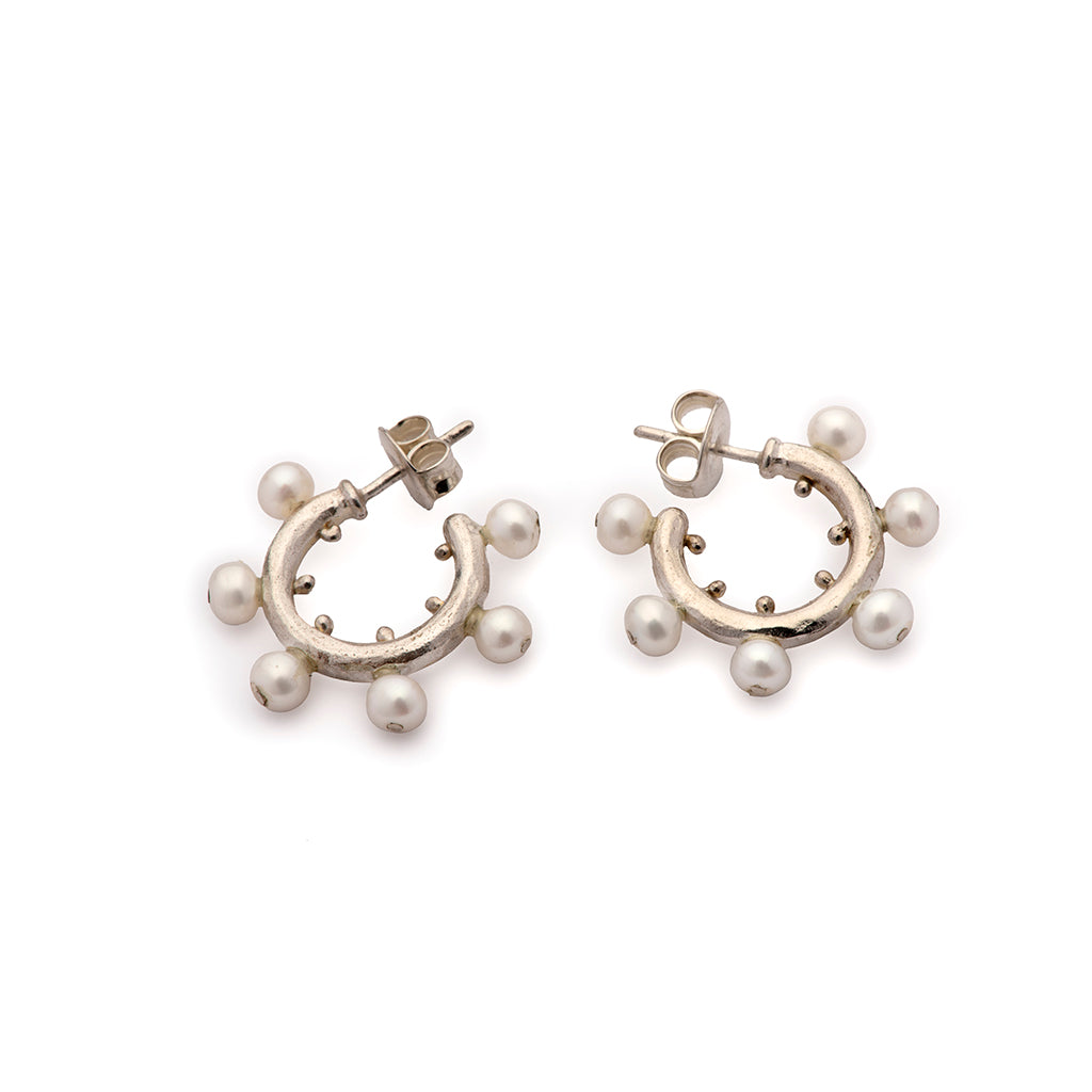 Los pendientes plata con perlas son una joya poética porque así son las perlas: misteriosas, todas distintas y con identidad propia. Las que hemos elegido para estos aros son naturales, cultivadas en agua dulce, y miden de 4,3 a 4,4 mm cada una. Si eres amante de estas gemas apreciarás esta joya con cinco bonitas perlas engarzadas en unos pendientes realizados en plata que miden 1,7 cm de diámetro.
